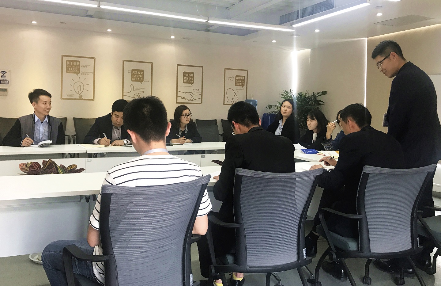 本次培訓(xùn)課程內(nèi)容包含了公司基本情況介紹、主要產(chǎn)品、企業(yè)文化、規(guī)章制度及假期福利、儀容儀表規(guī)范、移動辦公軟件等內(nèi)容,課堂上,參培學(xué)員們認(rèn)真聽講,積極互動,整個氛圍活躍良好!